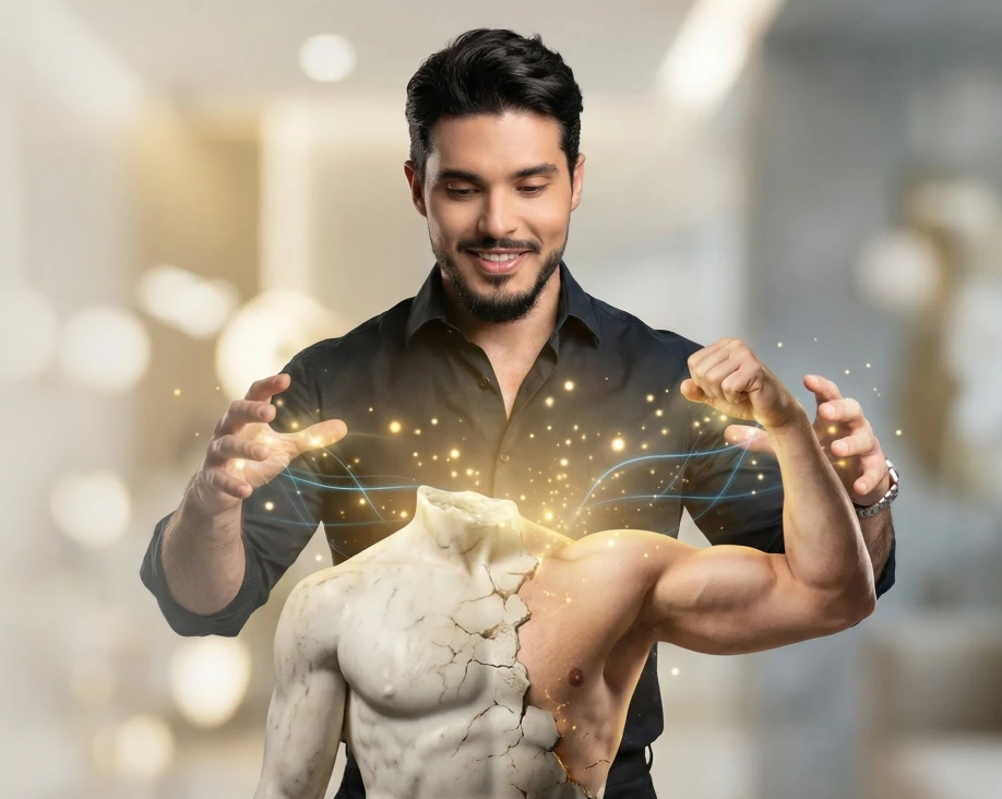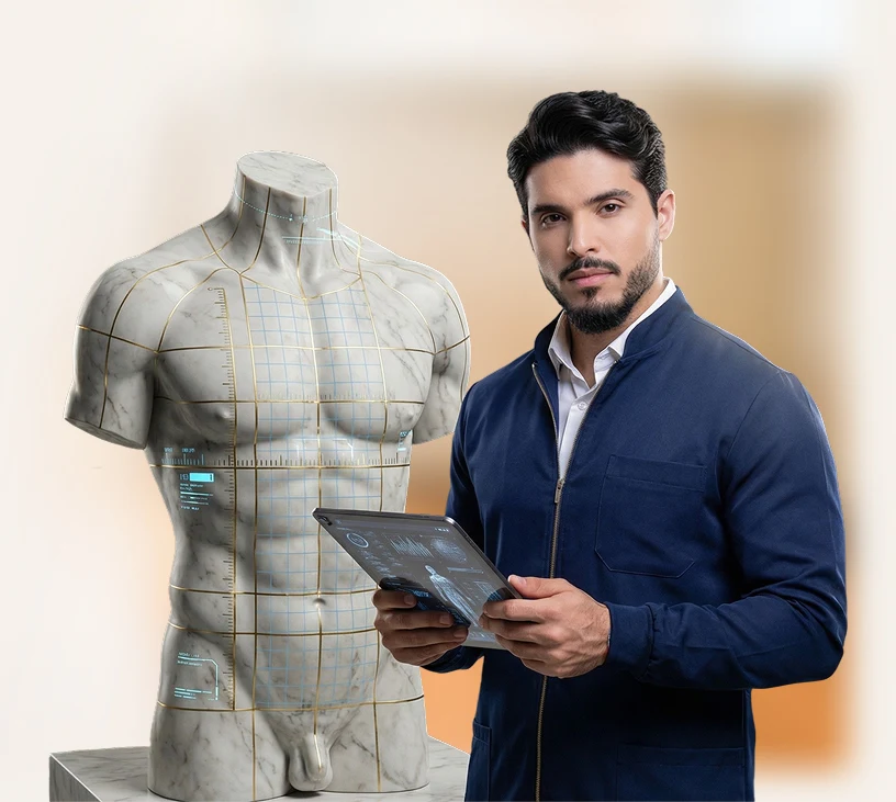 Mergulhei na ciência das enzimas inteligentes e criei o Protocolo Michelangelo®, um método capaz de remodelar o corpo em 30 minutos, com resultado visível já na primeira sessão.